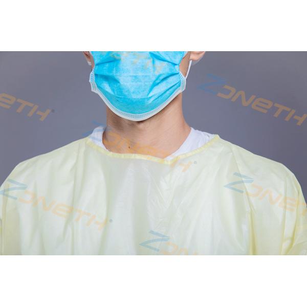 Yellow Waterproof 52g PP PE Disposable Isolation Gown Images |